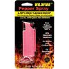 Wildfire 1/2 oz 1.4% MC pepper spray hard case and quick release keychain pink. The WILDFIRE® PEPPER SPRAY is hot, hot, hot. The Major Capsaicinoids are the true heat measure, WildFire has the hottest on the market at 1.4% Major Capsaicinoids. In addition to causing an attacker pain, The WildFire 10% oleoresin capsicum formula swells the mucous membranes, which makes breathing difficult, and swells the veins in the eyes, causing the eyes to close. It's made from 2,000,000 SHU's of raw pepper and these effects can last up to 45 minutes and cause no permanent damage. Has a UV identifying dye to help aid in the identification of an attacker. Wildfire 1/2 oz. Pepper Spray has a range of 6-8 feet and comes with a hard case. Each unit provides 6-10 one-second bursts and comes with a quick key release keychain, and safety lock. 3 ½" x 1 ½"